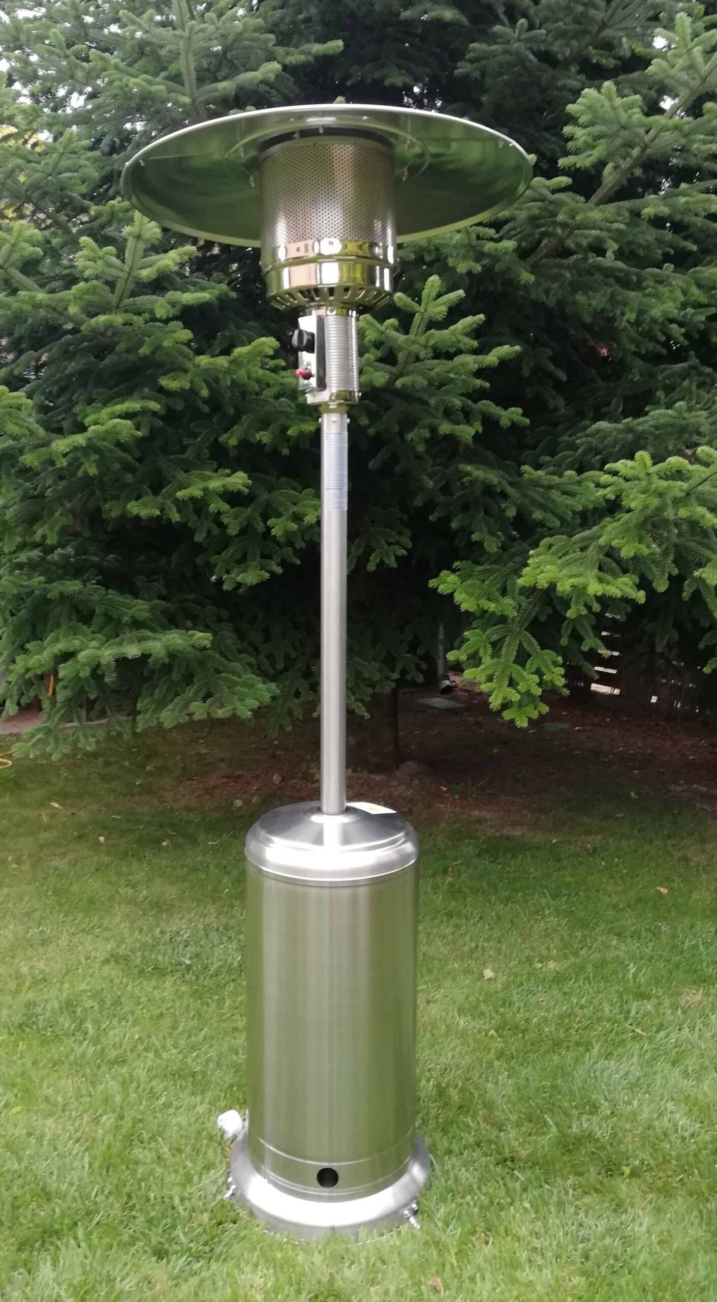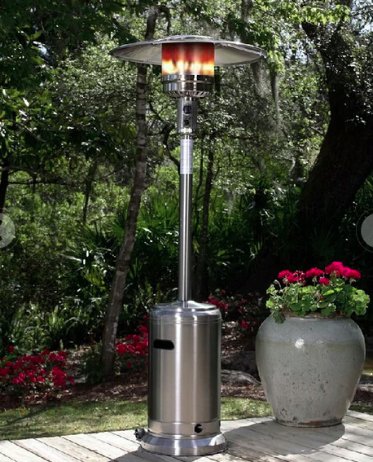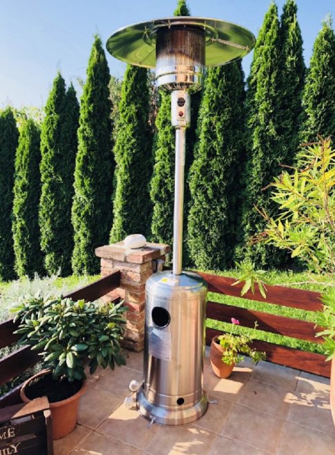 el calentador ambiental funciona con un cilindro de gas propano, cuenta con sistema de encendido electrico fiable, acabado de acero inoxidable, 2.20m de altura, uso en exteriores